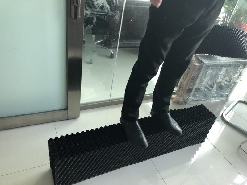 今天小編為了給大家的本公司生產的逆流方塔PVC填料,這是一款薄如紙的填料,可是你不能小看它,首先,不能因為它的薄而小看它的質量,我們來看看這薄薄的填料能承受多少重量吧! 每張填料都很薄,每張填料僅有0.3KG.小編把8張PVC填料粘了起來,所有的填料達到2.4KG,接下來小編演示團結就是力量的說法,再薄的PVC填料,只要正反面粘貼起來,奇跡就發生了!小編體重65KG呢,站在粘貼好的8張填料上,居然不變形,穩如泰山,這質量桿桿的。 小編推薦的,正是本公司賣得最火的逆流方塔PVC散熱填料,材料多薄已不是問題,問題是我們這質量,不用自夸請看圖吧!
